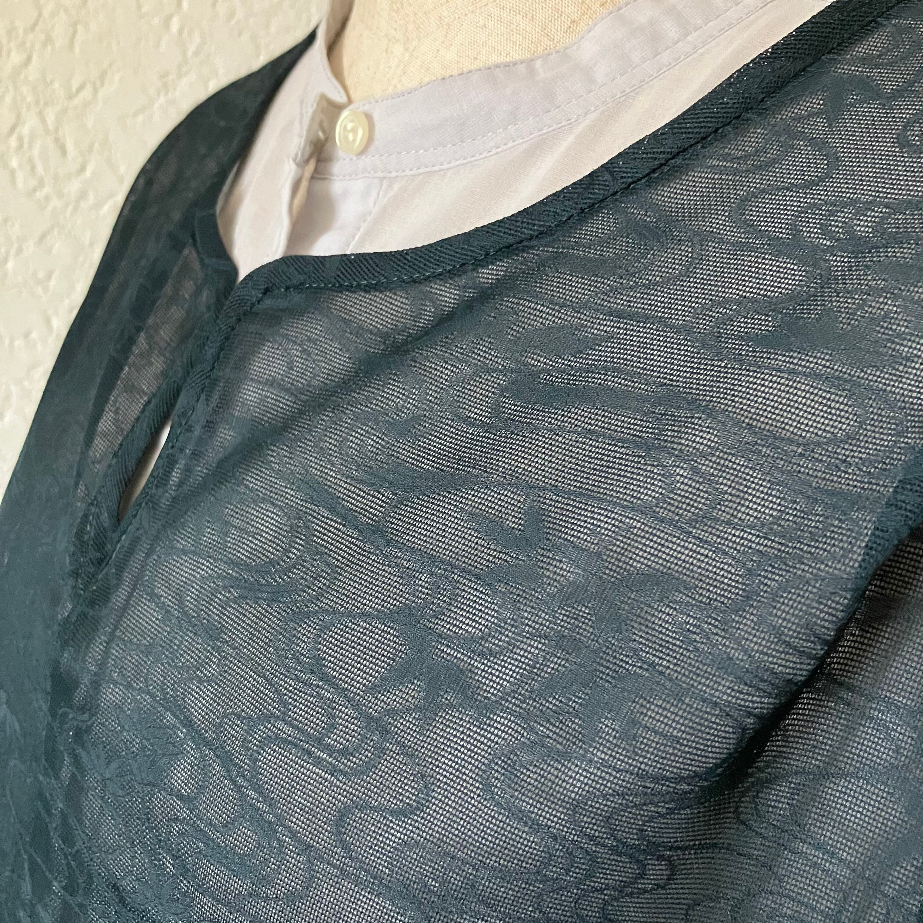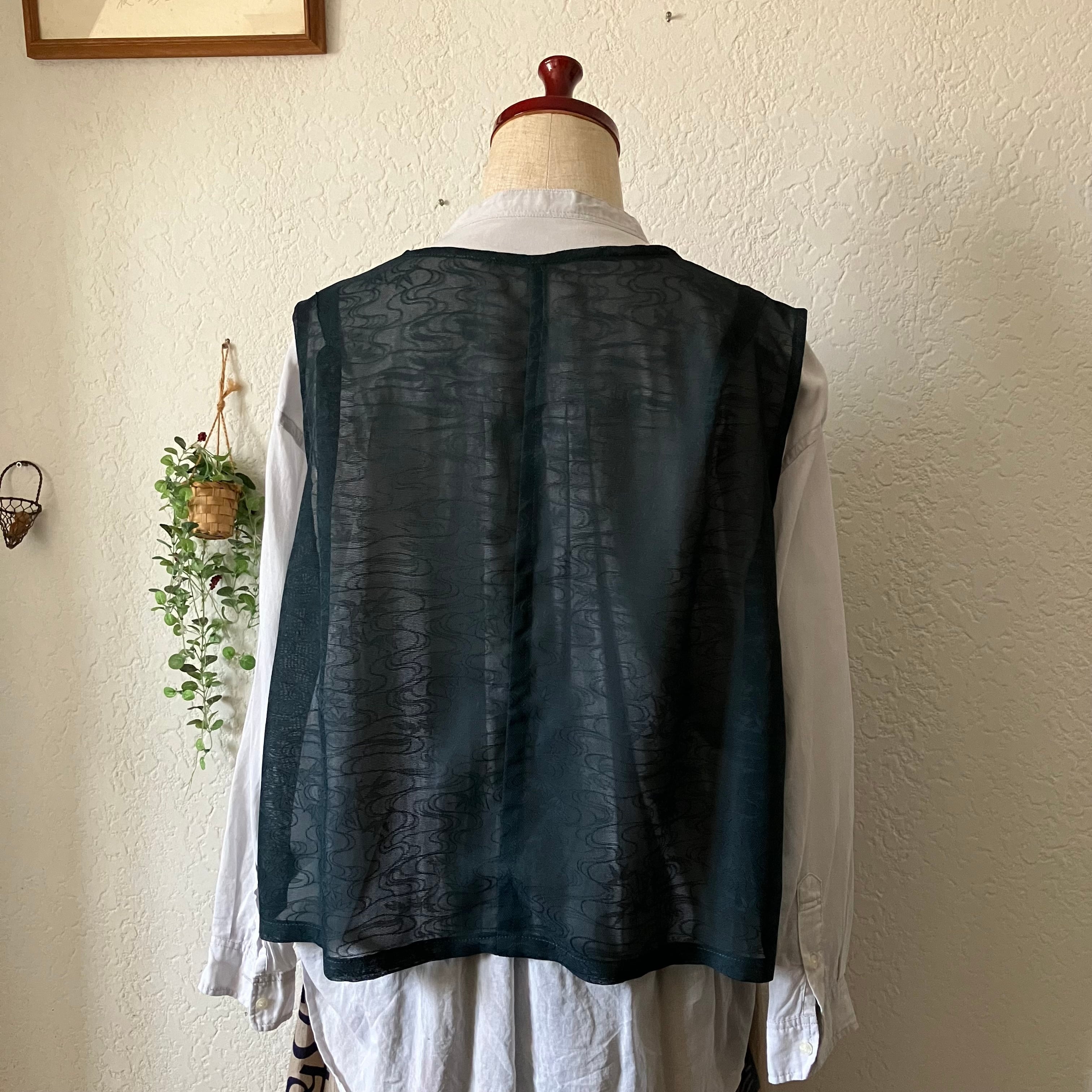 清流と笹の柄が爽やかな夏着物の絽を解いて使った、ゆったり目のシースルー(シアーシャツ)ベストです。