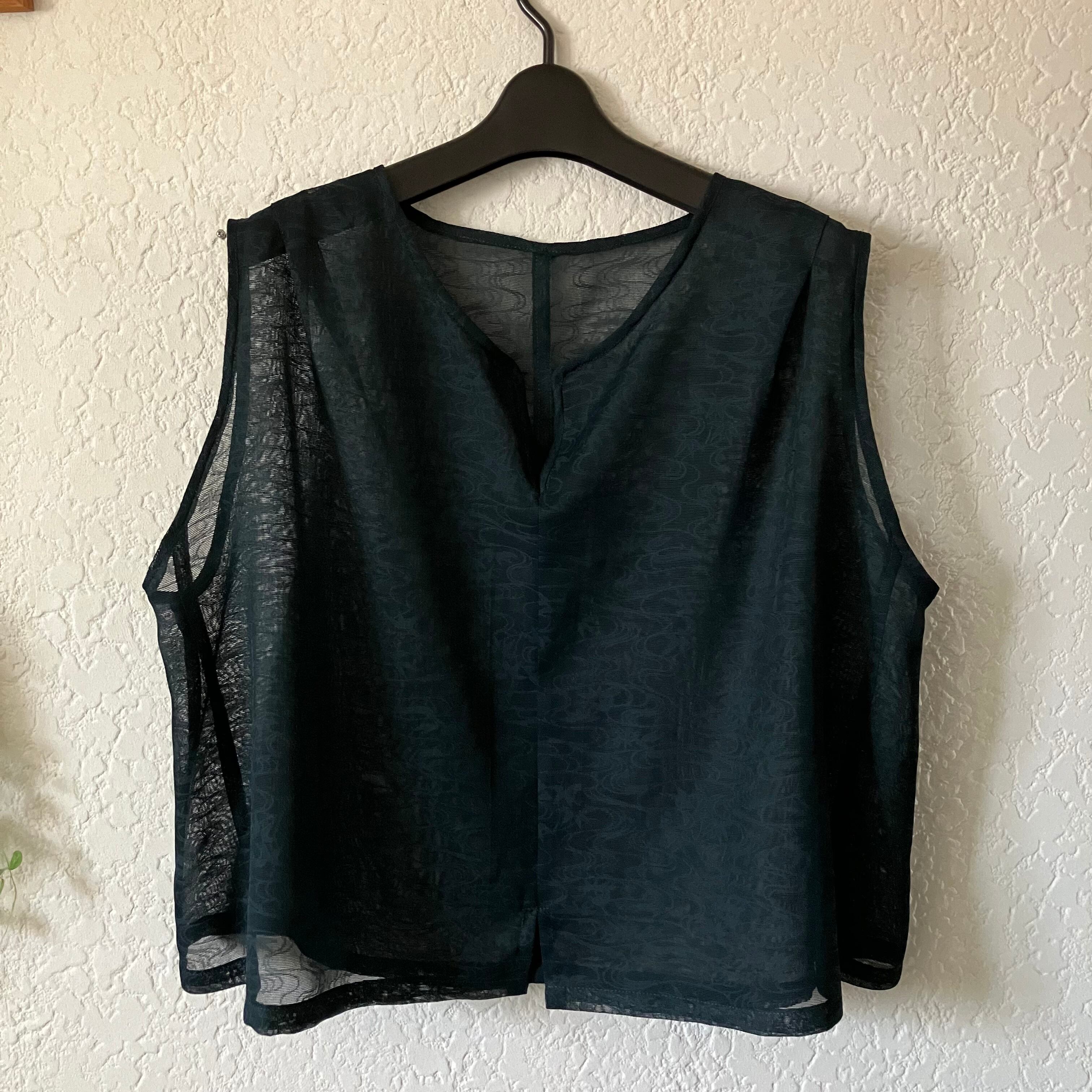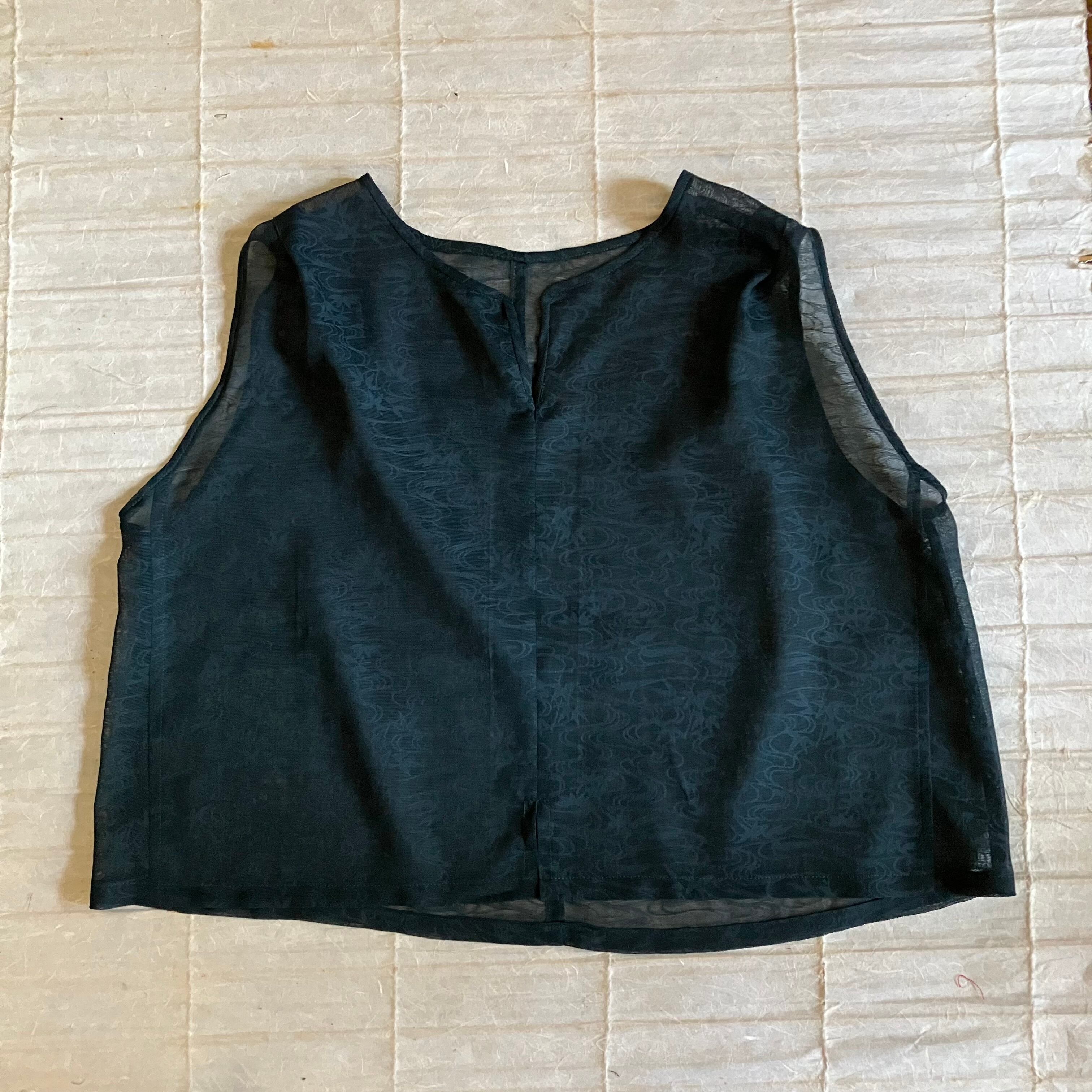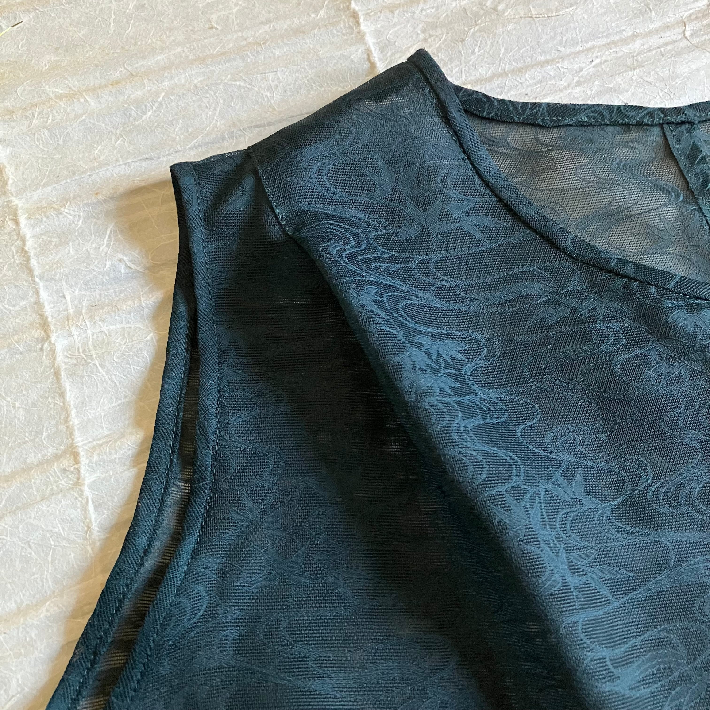 着物リメイク 古布リメイク シースルー シアー タンクトップ キャミソール ブラウス レディース シャツ 夏物 冷感 グリーン 和柄 和風