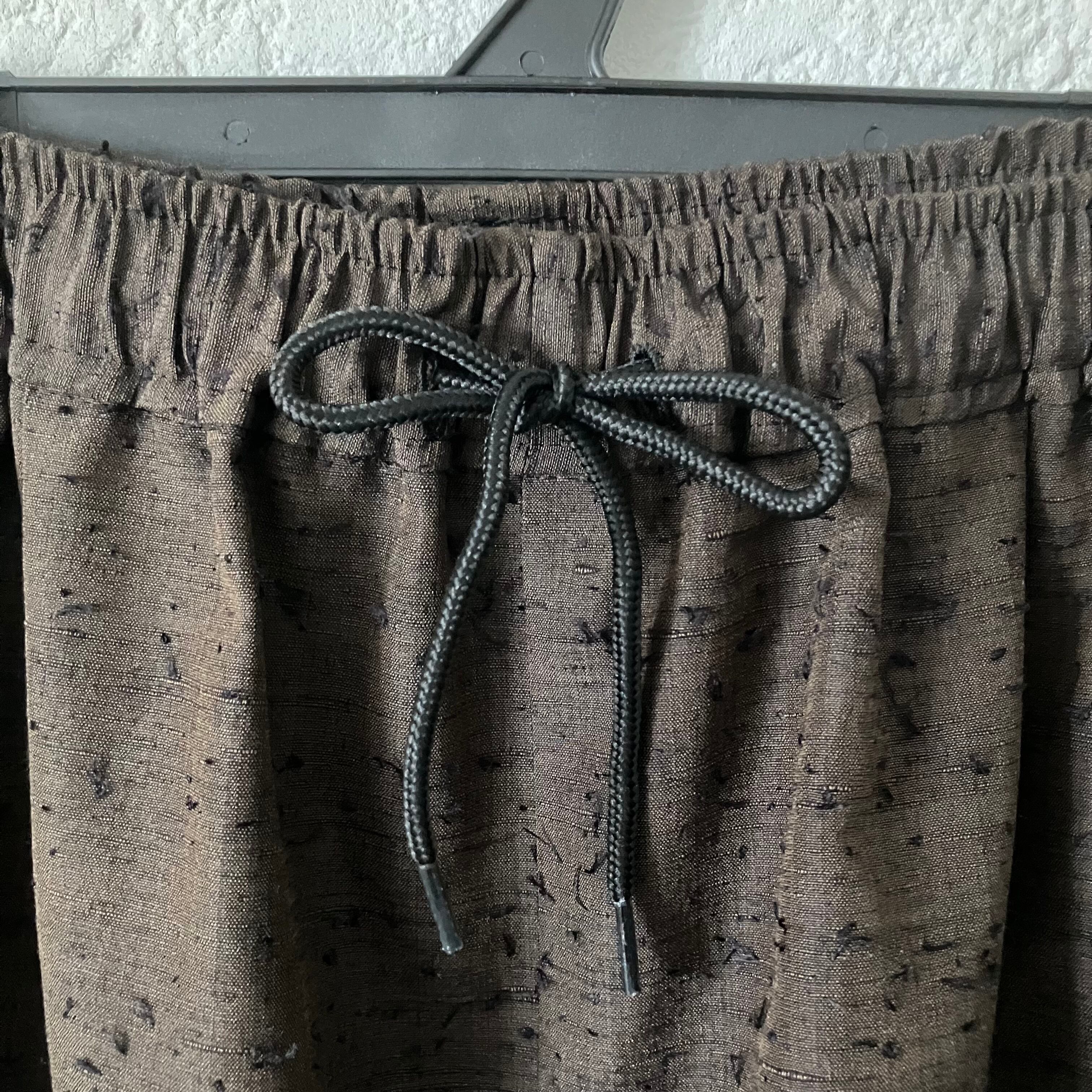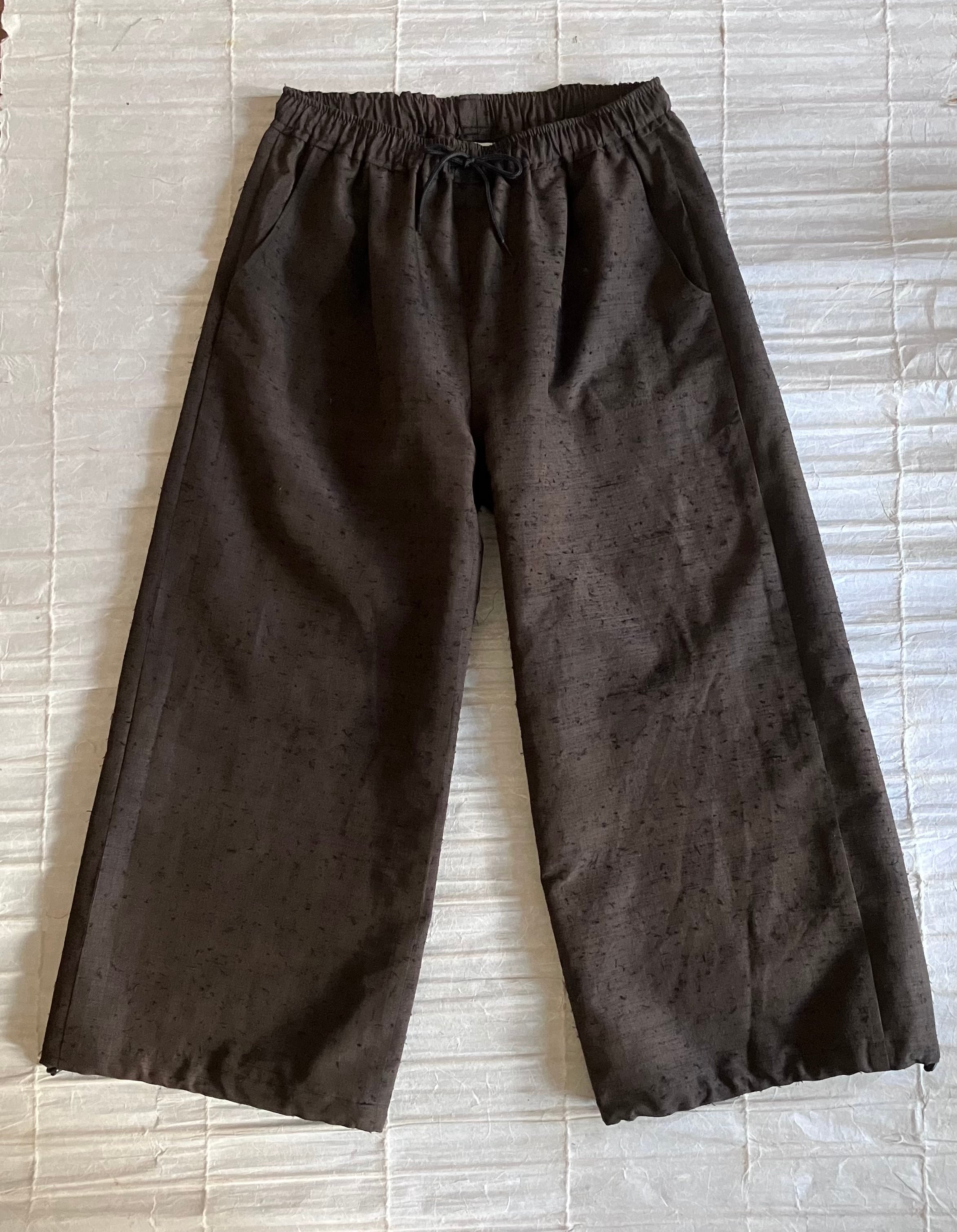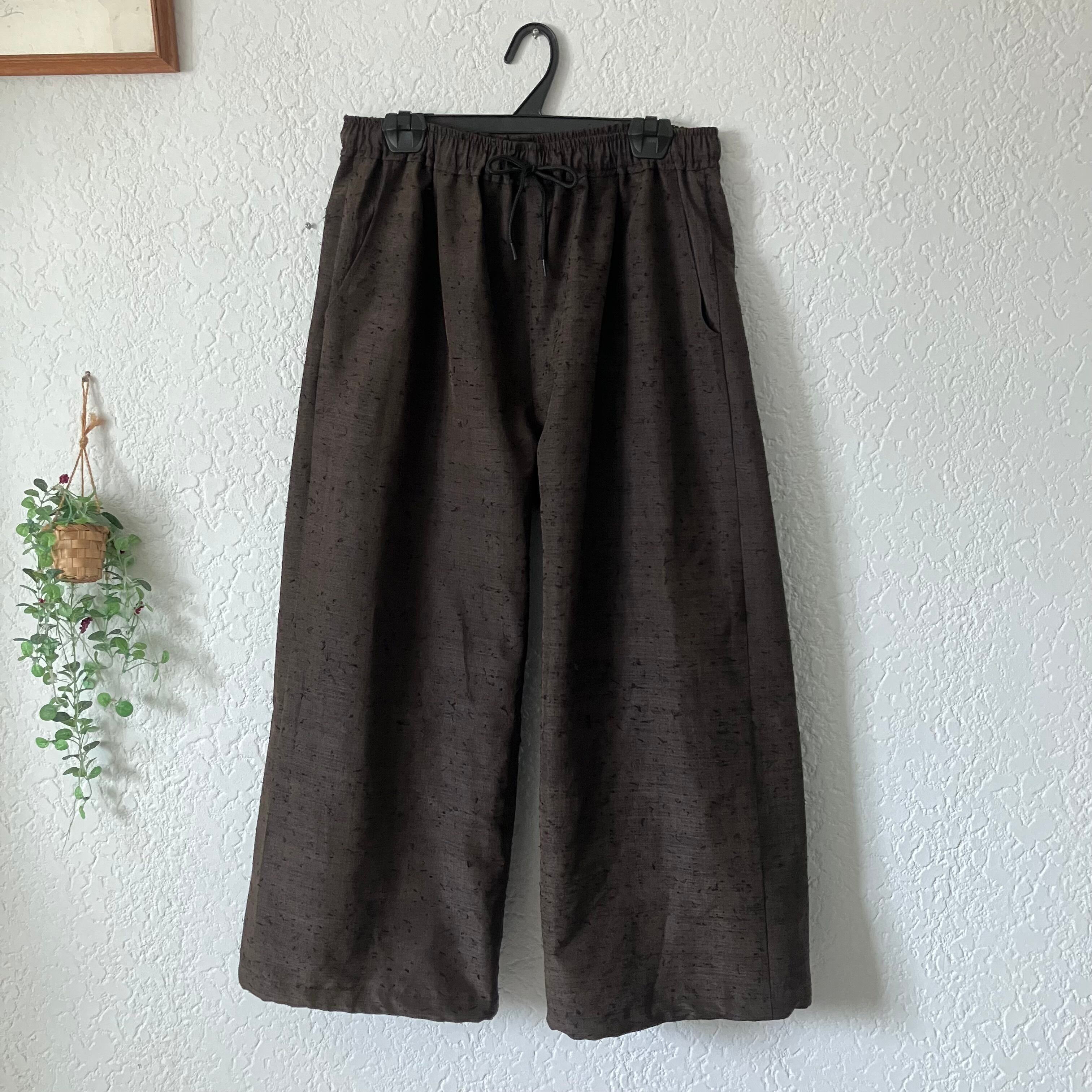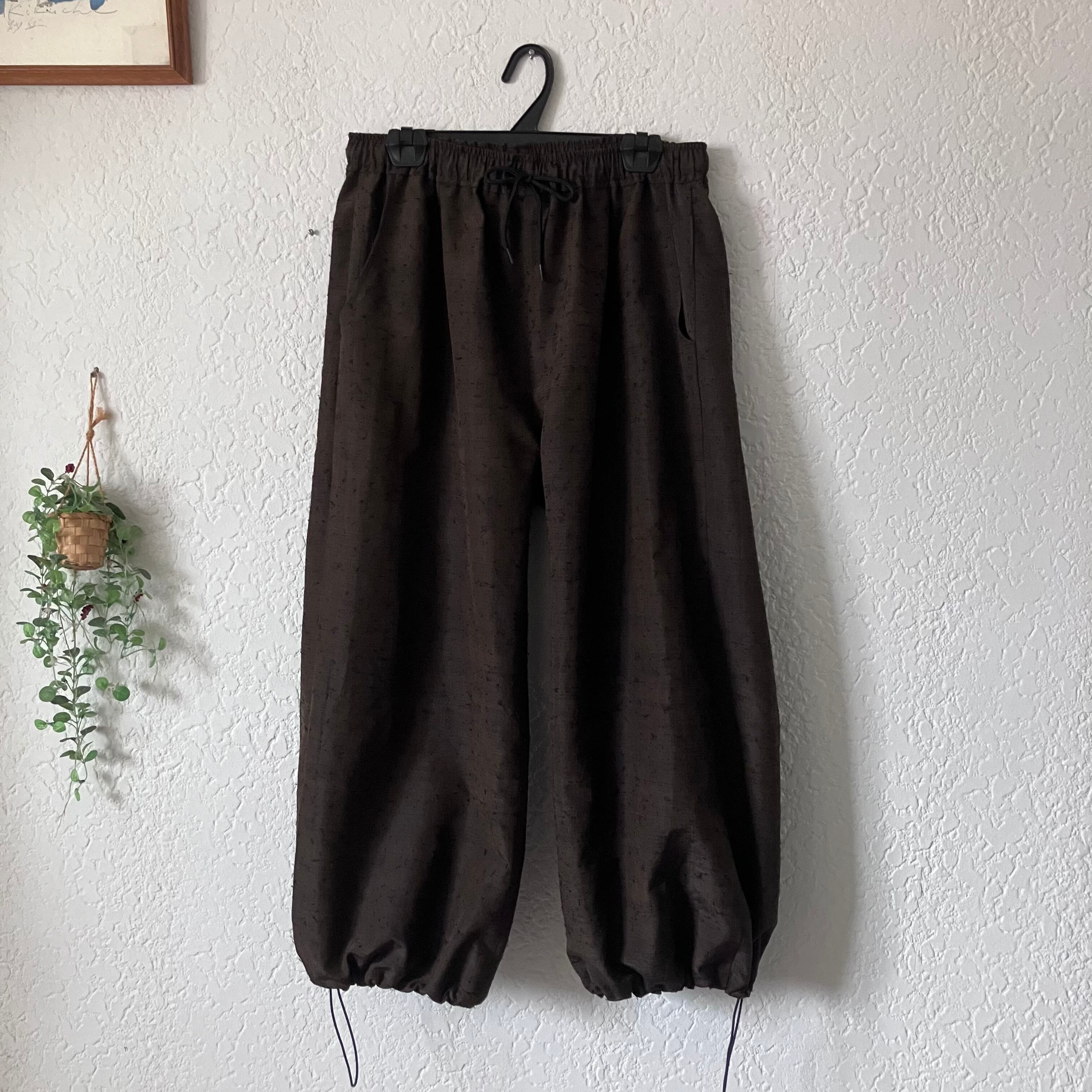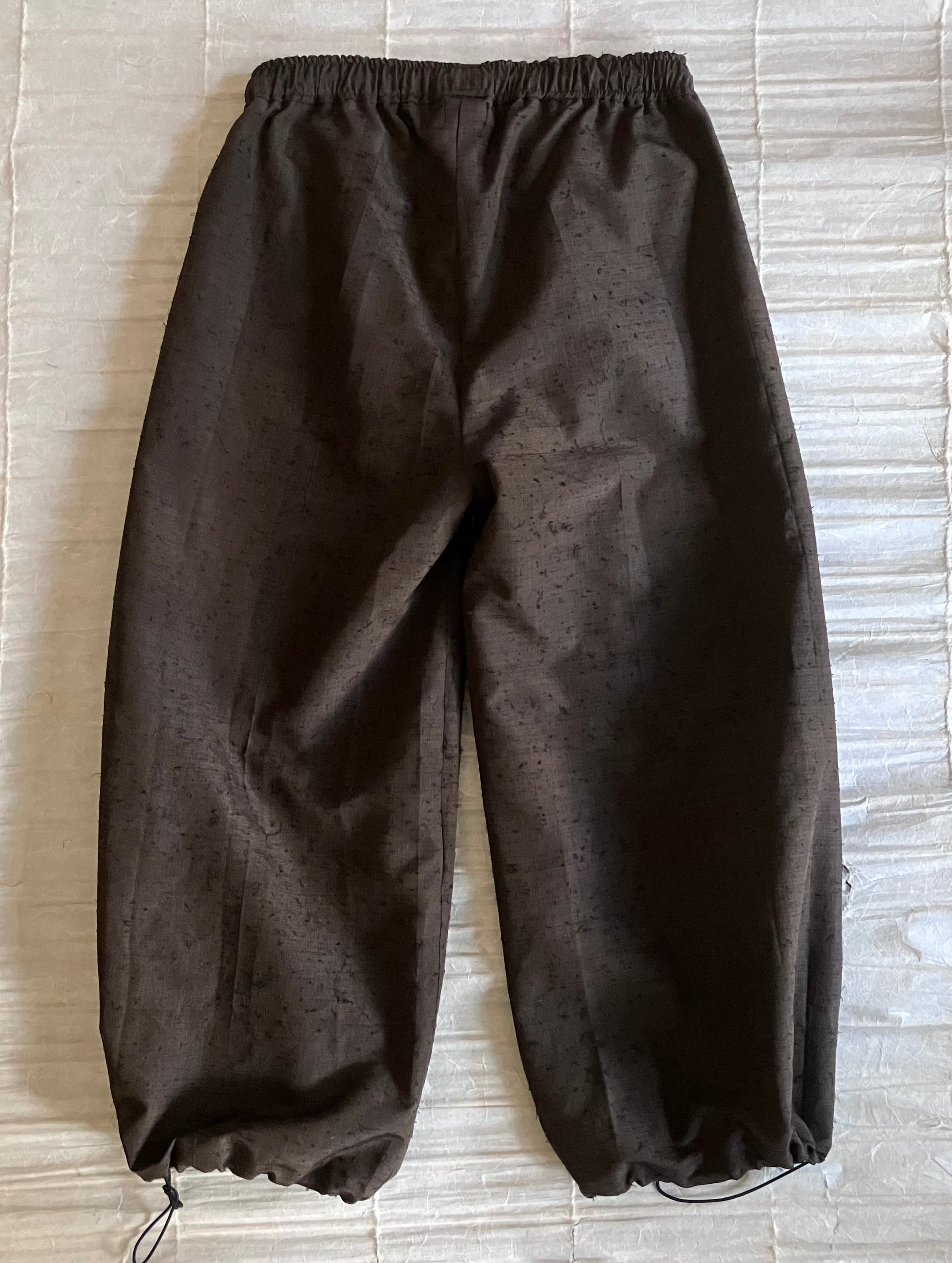 着物リメイク 古布リメイク ひげ紬 髭つむぎ ワイドパンツ バルーンパンツ シルエット ダークブラウン 春服 春物 お花見