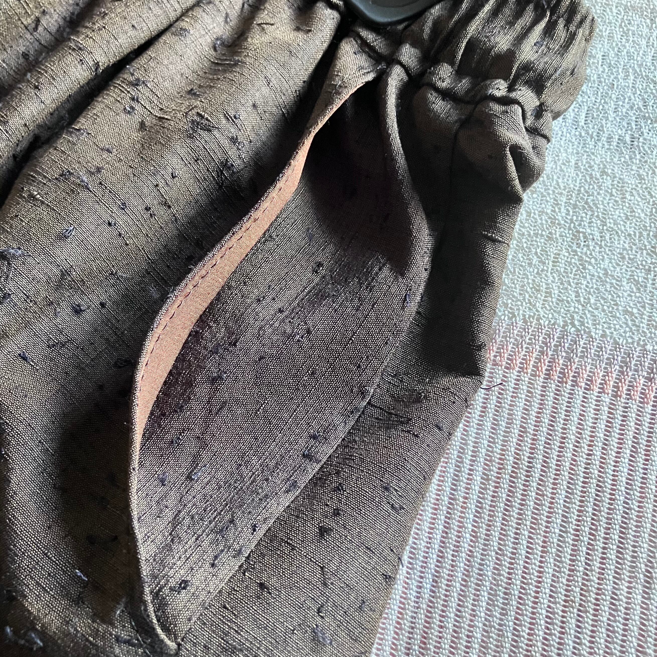 ポケットの内布も明るい茶色のシルクでかわいくしました。