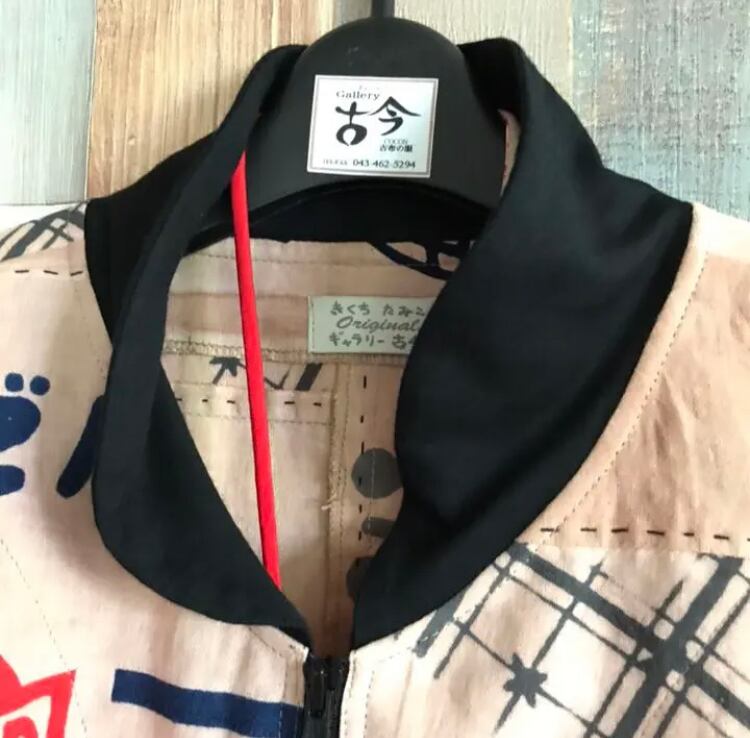 手ぬぐいを柿渋染めしたものをブルゾンにしました。