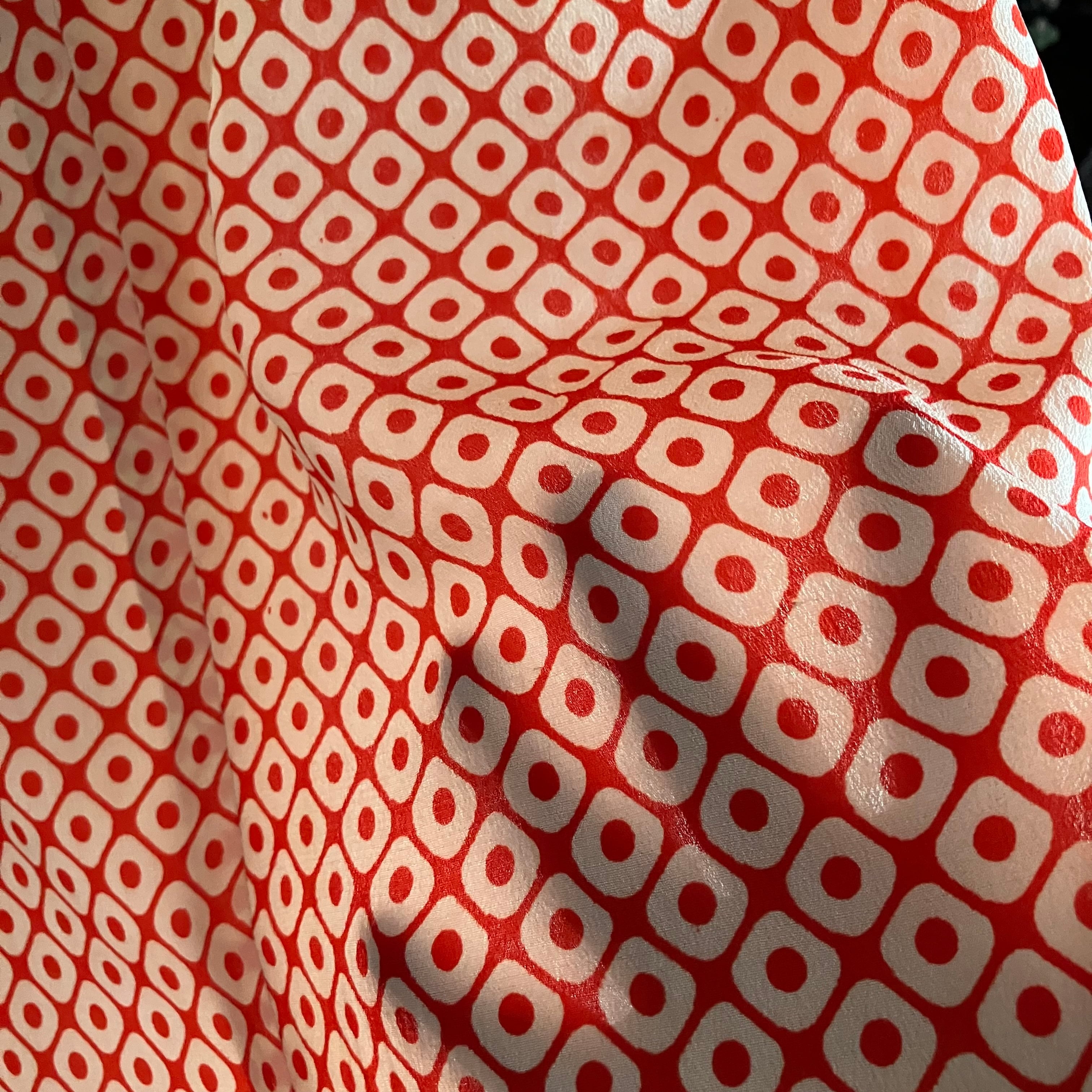 鮮やかな赤と白の鹿の子模様が可愛いノースリーブブラウスです。